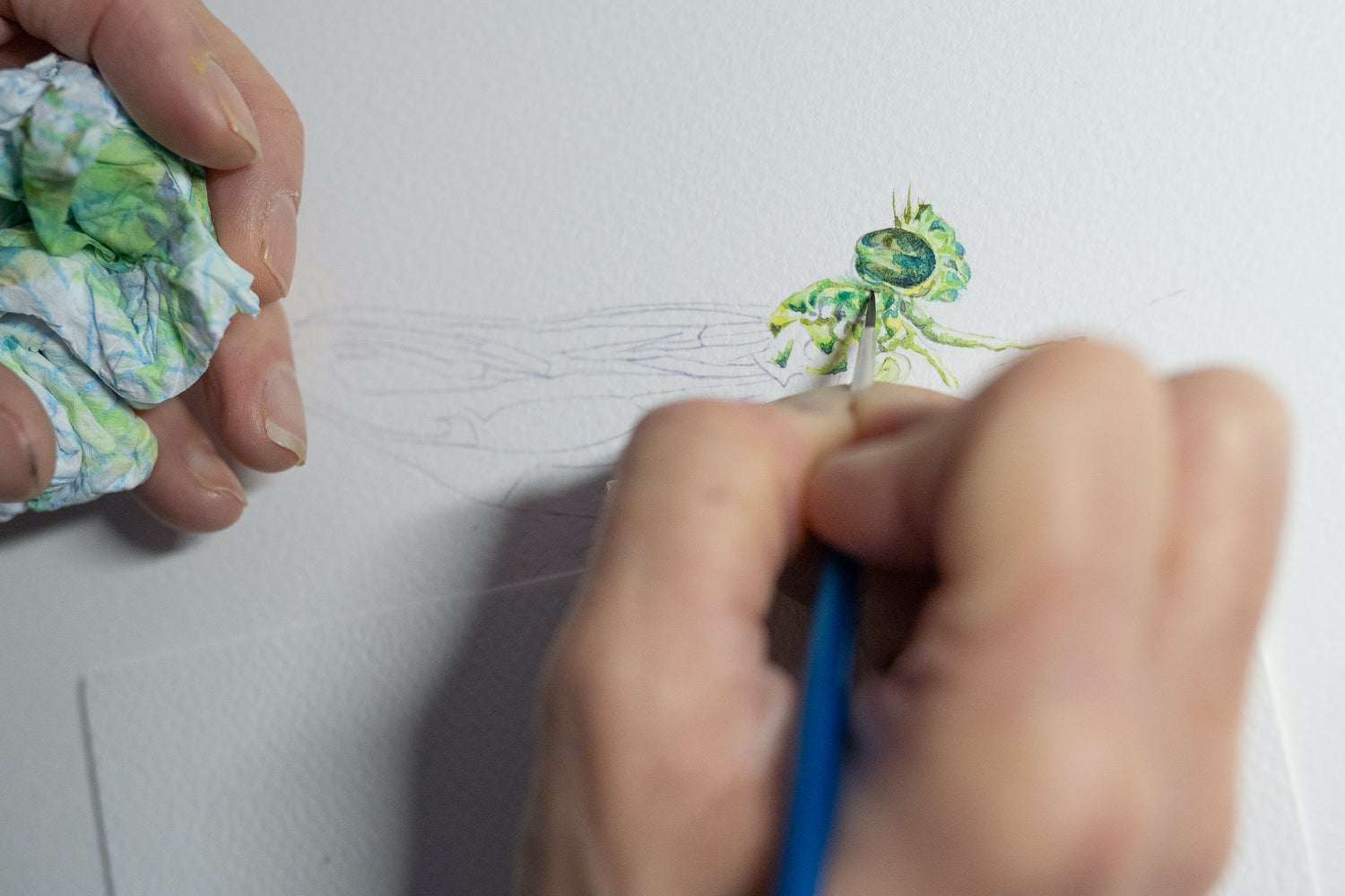 I don’t always use watercolour in a conventional style. I love its versatility and the way you can create really interesting textures, shapes and effects with it. Watercolour can also be a very unpredictable medium-which makes it so much fun! I often add pencil work, Indian ink and gouache for the finishing touches.
